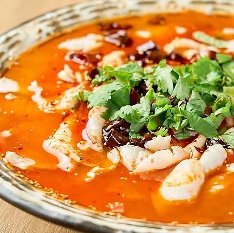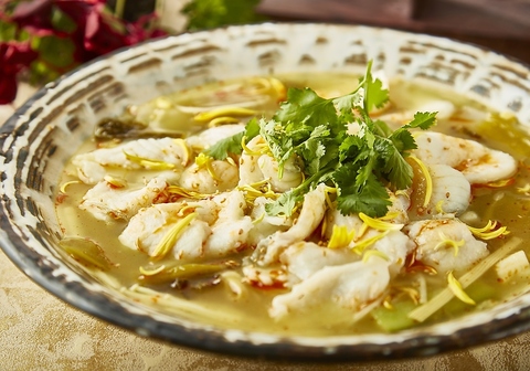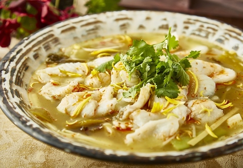 中国からのお客様はほとんどがオーダーするというくらい、人気のメニュー♪四川省で「酸菜」呼ばれる青菜を辛く漬けたものを、スズキと共に煮込んだ料理になります。ご飯のおかずにも、お酒のお供にもピッタリな一皿です◎