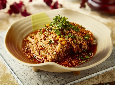 思い出すとよだれ(口水)が出ると言われた名物料理。辣【辛味】と麻【しびれ】のバランスが、ご飯にも麺にも、お酒にも合います。来店されたお客様のほとんどが注文される、オーナー自慢の一品。