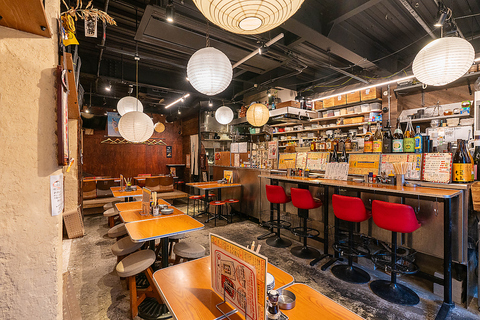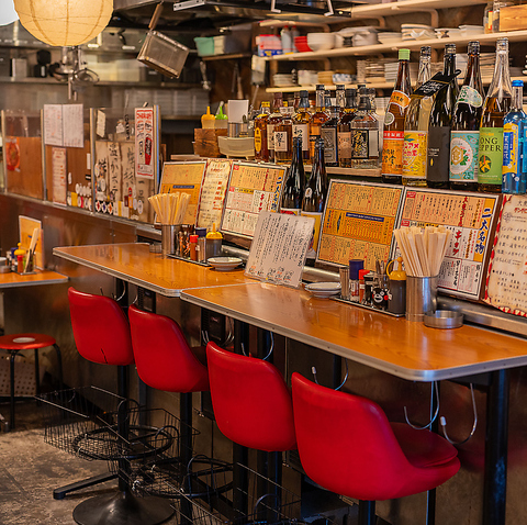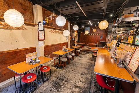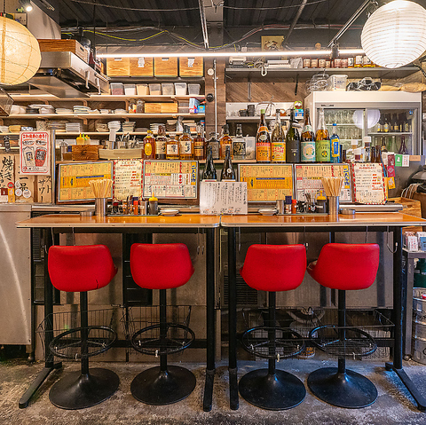 活気と温かみが漂う店内にカウンター席を完備。目の前で調理の様子を眺めながら、お仕事帰りのサク飲みや、気の合う仲間とじっくり会話を楽しむのに最適です。 お一人様でも気軽に立ち寄れる居心地の良い空間です。