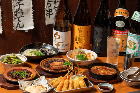 九州各地の珍しい焼酎や日本酒が豊富に揃っています。お気に入りの一杯で料理とのペアリングを楽しんで♪