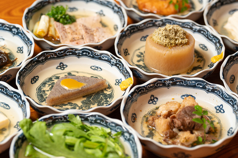当店のおでんは、こだわりの出汁が自慢の逸品。ふわっと香る柚子の風味が食欲をそそる「大衆おでん」は、心温まる懐かしい味わい。さらに、おでんの具材一つ一つに合わせた付け合わせをご用意しているのが特徴です!例えば、大根には特製の味噌を添えたり、それぞれの具材の美味しさを最大限に引き出します。