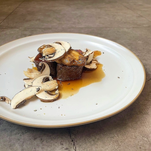 西伊豆の契約猟師直送の鹿肉と鹿の脳を使ったロッシーニスタイル。ソースには鹿の骨からとったフォンソースを使い鹿を全堪能出来る1皿です。
