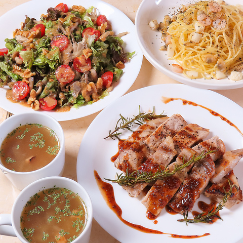 カフェならではのコース料理を3000円(税込)からご用意させていただきます。お肉やこだわりのパスタなど、予約時にご相談いただいてお好みに合わせて提供いたします。お誕生日などの記念日や各種宴会、女子会など幅広いシーンにおすすめです☆貸切も◎※2名様~