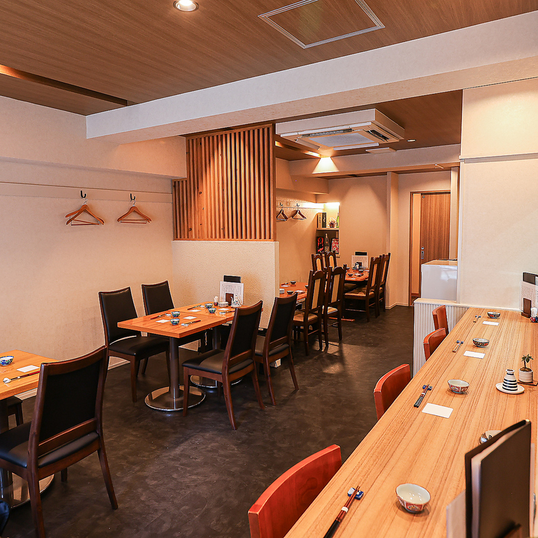 シンプルかつ落ち着いた雰囲気の中、目の前では店長の職人技を臨場感とともに楽しんでいただけます。新鮮な食材が多数揃えられ、あなたも料理を口に運ぶまで待ちきれなくなるでしょう。