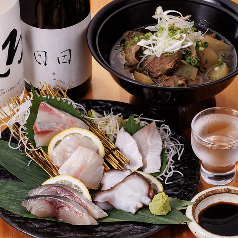 長浜市場から仕入れる海の幸。その日の朝に獲れた新鮮な魚介を仕入れています。旬のお造りは、新鮮さを活かすために盛り付けにもこだわり、その時期に一番美味しいものを厳選しています。九州の郷土料理をご堪能ください。