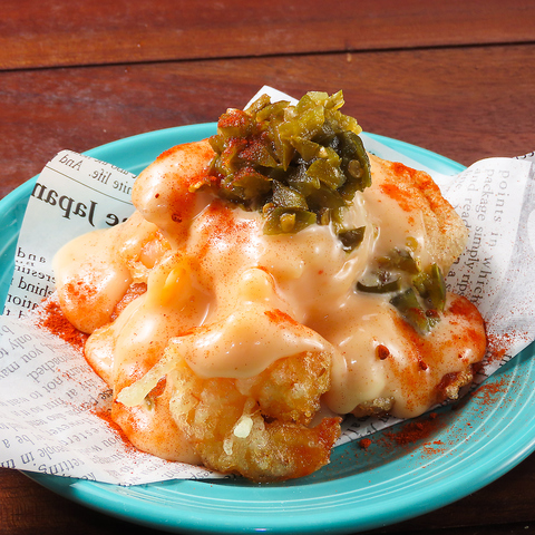 当店一押しおつまみ!メキシカンシュリンプマヨ!普通の「エビマヨ」とは違って、よりスパイシーでアクセントのある風味が◎普通のエビマヨにも変更可能です♪