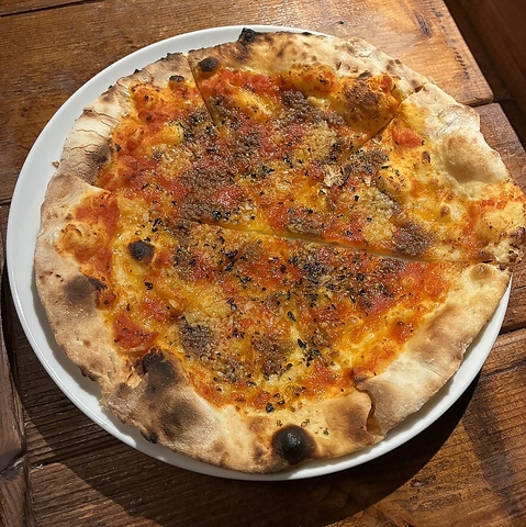 生地やソースまで自家製!ピザ釜で焼き上げる本格的な絶品ピザを堪能☆なかでもおすすめは「ガーリックとチョリソーのピザ」。1~2名様向けのコンパクトサイズとなっており、トマトベースのソースにガーリックが効いたおつまみとしても最適な一品です。お仕事帰りの一杯と共にいかがでしょうか。