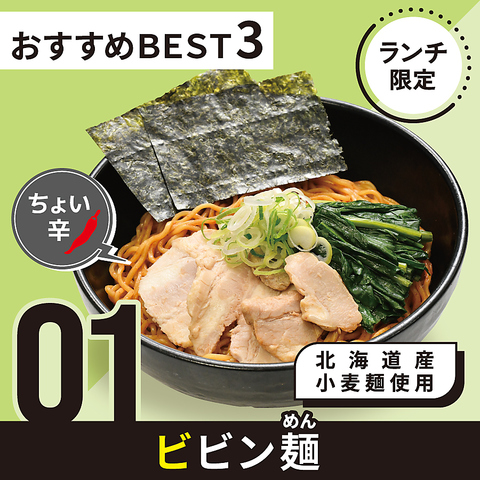 モチモチの冷たい麺をコチュジャンベースの特製ソースで和えたビビン麺は、一度食べたらやみつきになる美味しさです♪トッピングのチャーシューやほうれん草、海苔、葱などを豪快に混ぜて召し上がれ!ピリ辛で奥深い味わいが食欲をそそり、夏はもちろん一年中楽しめます。よく混ぜて旨辛のハーモニーをご堪能くださいませ!