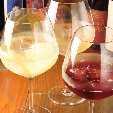 ワインはスパークリング、白、ロゼ、赤をグラス一杯から提供しております。様々な種類を飲み比べたい方には、スタッフが選ぶ3グラス飲み比べセットがおすすめ。料理やお好みに合わせ、美味しいワインをセレクトいたします。ボトルワインはもちろん、グラッパや各国の蒸留酒、リキュールなどもございますので、スタッフまでお声がけください。
