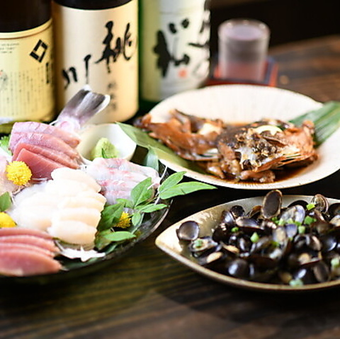 「刺し身盛り合わせ」や、単品の刺し身には、東北地方から直送される鮮魚を使用◎その他、青森県十三湖産の大粒しじみを使った「しじみバター」「しじみだし巻き玉子」や、同じく青森県産の「帆立の釜飯」、ボリューム満点な「浜焼きセット」など、魚介の旨味あふれる逸品を多数ご用意しております!