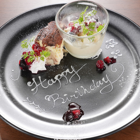 AGGでは記念日のお祝いにも♪記念日・誕生日プレートでサプライズの演出もお手伝いいたします◎
