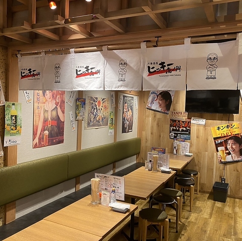 木の温もり溢れるアットホームな空間。みんなの笑顔が集まる賑やかな店内で楽しく宴会をお楽しみいただけます!カウンター9席、6名様まで座れるテーブル席も3つご用意しておりますのでシーンに合わせてご利用いただけます!