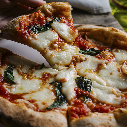 高温短時間で焼き上げるピッツァはサクッともっちり。全粒粉使用で香ばしく栄養価も高い