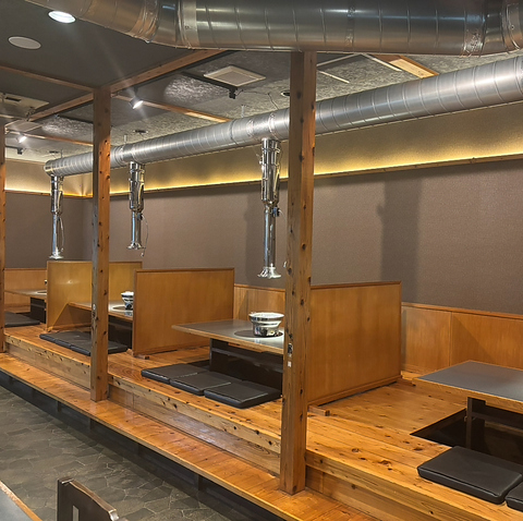 木の温もりが広がる掘りごたつ席は、最大28名様までご利用いただけるゆったりとした空間。広々としたテーブルで落ち着いて過ごせるため、家族連れや仲間同士の集まりにも最適です。会話を楽しみながら上質なお肉を味わえる、心豊かな時間をご提供いたします。ゆっくり腰を落ち着けられる人気のお席です◎