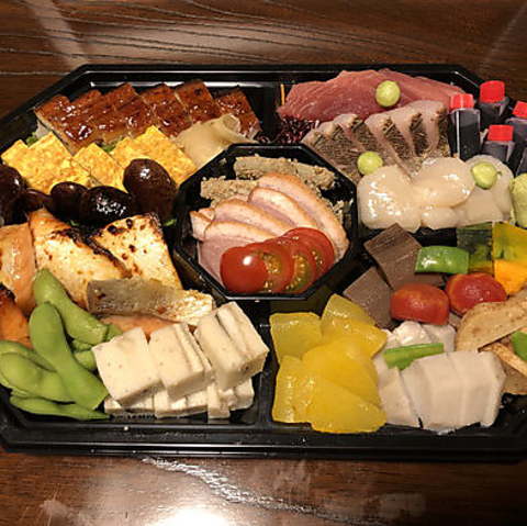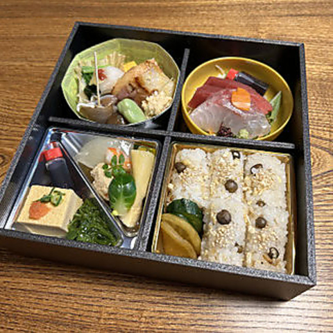 赤飯や鯛の刺身などお祝い仕様への変更も承ります。申込み時にお伝えください。※赤飯を製作する都合上、5個以上ご注文の方に限ります。