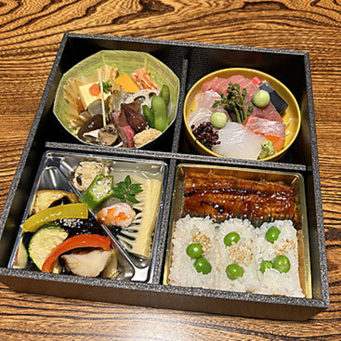 - 松花堂弁当◆一つのお弁当箱にお料理とご飯が入った商品になります。