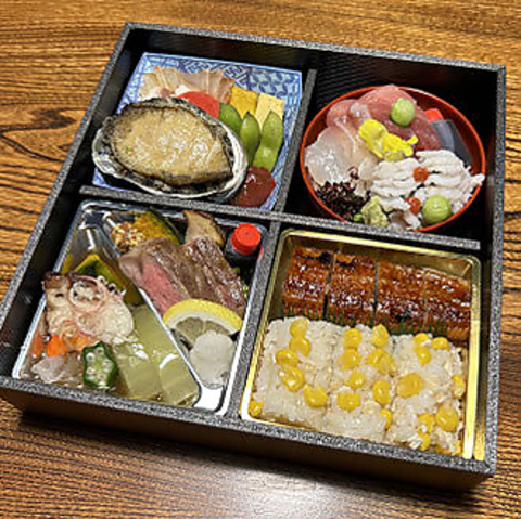 ■お造り3種、もしくはお造り替わり■八寸 鮑など8種盛り■焼物 甘鯛ファオグラ焼や和牛ステーキ■炊き合わせ 松茸(9~10月入荷時)■小鉢 和え物■ご飯 鰻棒寿司、蟹ご飯など