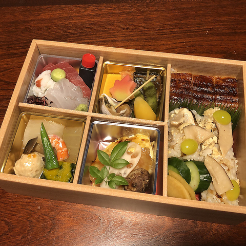 松花堂弁当◆一つのお弁当箱にお料理とご飯が入った商品になります。