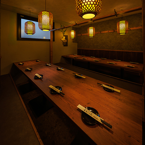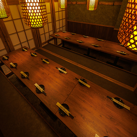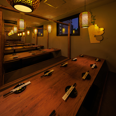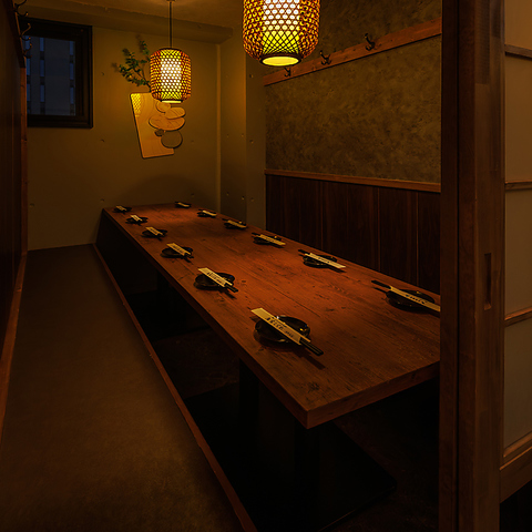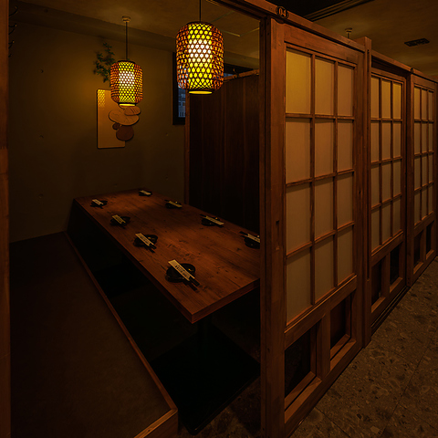 当店のお席は全席個室!2名様の少人数から皆さま個室でご案内可能!障子風の扉で仕切られた個室空間は、会社の宴会や歓送迎会、接待にもオススメです!ゆったりと料理とお酒を堪能できます!