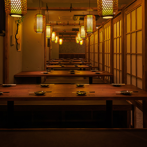 店貸切のご予約も大歓迎!仕切りを外せば大人数の宴会にもピッタリの宴会空間にレイアウト可能!落ち着きと開放感を備えた空間で、会社宴会・歓送迎会・同窓会などをお楽しみいただけます!