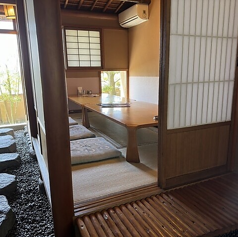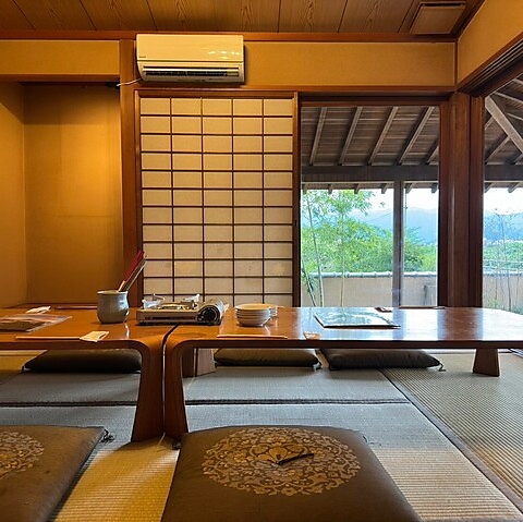 和の落ち着きを感じられる特別な空間です。足を伸ばせるので、リラックスしながら食事を楽しむことができます。大きな窓からは美しい庭園が望め、自然の景色を眺めながらゆったりとした時間を過ごせます。家族や友人との会話も弾み、心温まるひとときをお楽しみください。特別な食事体験をぜひご堪能ください。