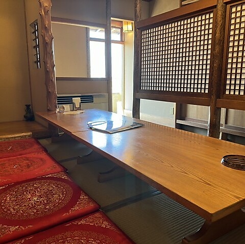 和の趣が漂う心地よい空間です。畳の温もりと広々としたテーブルが特徴で、家族や友人とゆったりとした時間を過ごせます。お子様連れでも安心の設計で、リラックスしながらお食事を楽しむことができます。窓からの自然光が心地よく、特別なひとときを演出する場として最適です。ぜひ、落ち着いた雰囲気をお楽しみください。