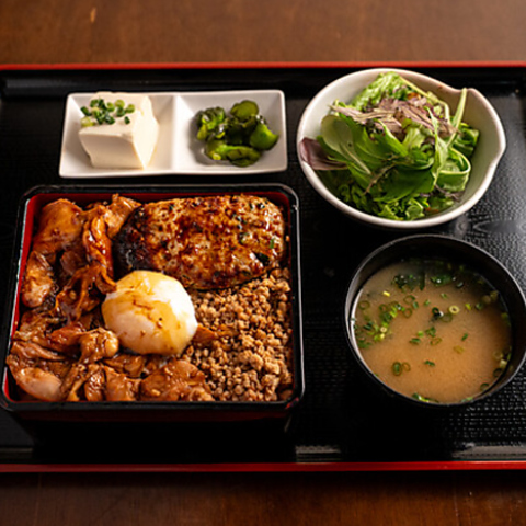 当店名物 こだわり ひな鶏まるごと一羽の中に、もち米、朝鮮人参、なつめ、ニンニク、 栗などを詰めて十時間コトコト煮込みました!! 肉はホロホロ柔らかく骨まで食べれて自家製の辛味噌付きで 二度楽しめる一席二鶏のサムゲタンです ・1羽 (3~4人前)…4,598円 ・ハーフ (1~2人前)…2,948円