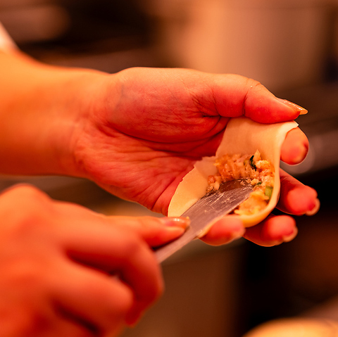 当店の餃子は皮も自家製!焼きと水餃子と生地を使い分け、注文を受けてから皮を伸ばしお包みします。こだわり尽くしの洗練された餃子をぜひ当店でお楽しみ下さい。