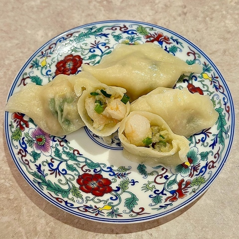 仕込まれた手包み水餃子にプリっと弾ける海老の旨味をとじこめました。