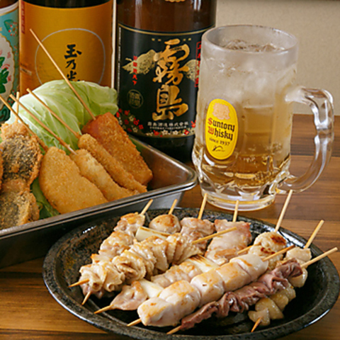 たっぷり2時間飲み放題に自慢の炭火焼鳥串や名物・バカ盛り唐揚げなどが愉しめるコースは2640円~♪
