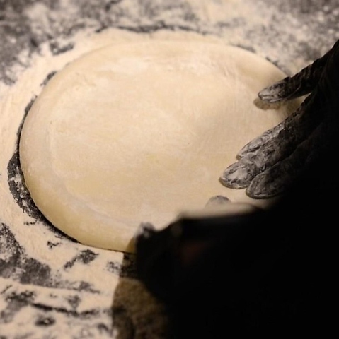 生地から手作りのピッツァ。薄めの生地はカリッと香ばしく、内側はもっちり。食べ応えと軽やかさを両立させました。職人が石窯で焼き上げます