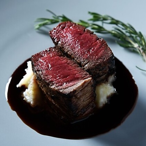 フィレは牛の腰のあたりの部位で、脂肪が少ない上に、非常に柔らかい部位として知られています。シンプルな調理法で素材の風味が最大限に引き出された一皿です。赤ワインと共にご堪能あれ。