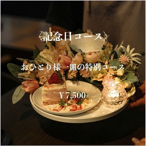 大人気のメッセージつきドルチェフラワープレートがついたおひとり様一皿の特別コースです。