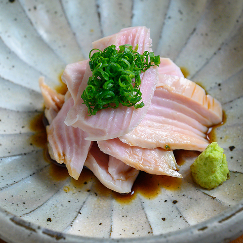 プリプリのコリコリの食感!!あっさりポン酢で女性にも大人気!少し加熱処理をしたお刺身です。ここでしか堪能できないかも?!