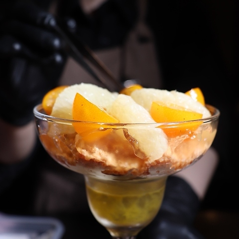 【人気のご利用】暖かい電球が包む落ち着いた空間の中で、素材にこだわった贅沢パフェとお酒が楽しめる夜パフェ専門店