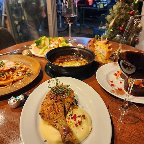 肉と海鮮の贅沢なハーモニーを楽しめるコースです。【絶妙な旨み】が口の中で広がり、思わず笑顔がこぼれます。バケットはお代わり自由で、たっぷりと楽しめる2.5時間の飲み放題も魅力的。友達と一緒に盛り上がるにはぴったりのディナータイムをお過ごしください。