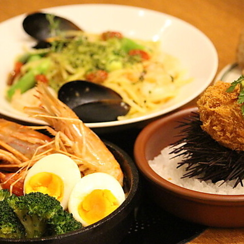 アヒージョを中心に、みんなで楽しむ料理が揃ったお店!新鮮な食材を使ったおつまみや一品料理、パスタも自慢です。飲み放題も付いていて、盛り上がること間違いなし!仲間とワイワイ作って、食べて、会話が弾む時間を過ごしてください。楽しいひとときを演出するための場所がここに!美味しい料理と共に心温まる体験を!