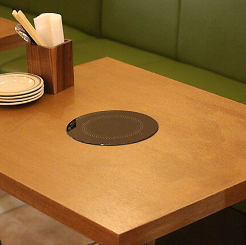 友達と過ごす特別なひとときにぴったりな空間が広がっています。おしゃれなテーブルが並び、みんなでわいわい楽しめる雰囲気が魅力的です。各席には便利な調理設備が備わっているので、目の前で料理を楽しむことができます。食材の香りや音を楽しみながら、会話も弾むこと間違いなし◎