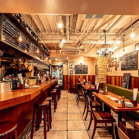 おしゃれな内装が魅力のカウンター席で、ひとりでも安心して食事を楽しむことができます。デートや友人との楽しいひとときにもぴったりな空間です。落ち着いた雰囲気の中で、心地よい料理を味わうことができるのが、この店の魅力。思い出に残る素敵な時間を過ごせる場所となっております。