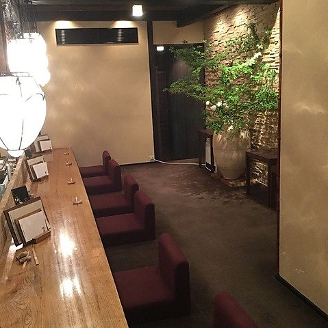 当店では、お食事と共に日本の美しい四季を感じていただけるよう、空間演出にこだわりがございます。週替わりで飾られる生花や緑が、洗練された和モダンな店内に彩りを添え、お客様に心安らぐひとときをお届けします♪まるで隠れ家のような落ち着いた雰囲気で、非日常の体験をご提供いたします◎