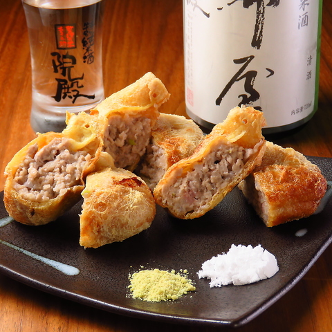 油揚げの中にひき肉を詰めて揚げちゃいました!