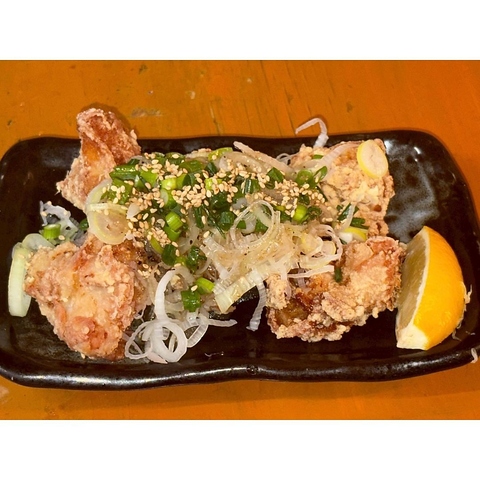 ジューシーな鶏の唐揚げに、さっぱりとしたおろしポン酢をたっぷり添えた一品。揚げたての香ばしさと、ポン酢の爽やかな酸味が絶妙に調和し、重さを感じさせない軽やかな味わいが魅力です。食欲をそそる香りと、口に広がる旨味がやみつきになる逸品。ビールとの相性も抜群で、箸が止まりません。