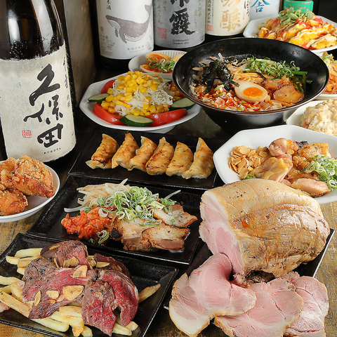 豊富なコースラインナップをご用意しており、シーンに合わせてお選びいただけます。特におすすめは3500円(税込)のコース。80種類以上の料理とドリンクが2時間食べ飲み放題でお楽しみいただけます。もちろん、自慢のラーメンも含まれており、ミニサイズでのご注文も可能です!飲み放題付きなので、宴会にもおすすめ◎