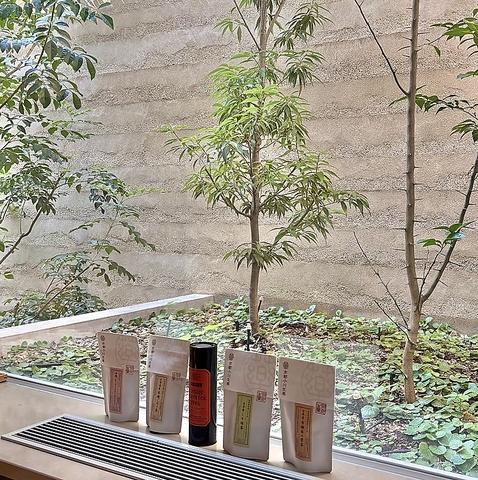 中庭の緑を眺めながら、ゆったりとした時間をお楽しみいただけるカウンター席。お一人様でも気兼ねなくお過ごしいただけます。