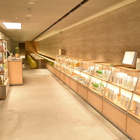 京都小川生薬の一階にございますギフトショップでは、ここでしか手に入れられない限定パッケージの健康茶や入浴剤など、約40種類以上もの商品を取り揃えております。レストランでお出ししているお茶も全種類ご用意がございます。お食事後にぜひお立ち寄りください。