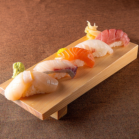 その日の仕入れから最も状態の良い鮮魚だけを厳選し、大将が丁寧に握り上げる「お任せ握り寿司5貫」。ネタの旨味を最大限に引き出すため、切り付けや温度、シャリの握り加減まで細やかに調整しています。季節ごとに変わる旬の味わいを一度に楽しめる贅沢な一皿で、初めての方にも自信を持っておすすめできる逸品です。