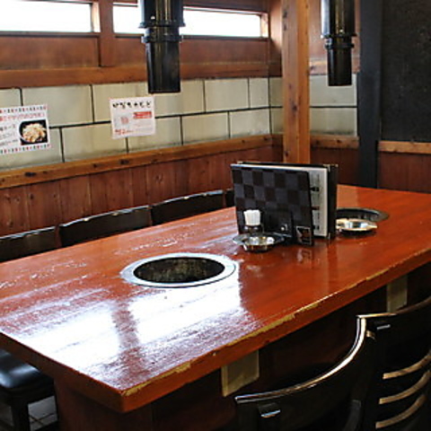 温かみのある木のテーブルが特徴で、焼肉を囲んで楽しい会話が弾むこと間違いなし。落ち着いた色合いの壁が心地よい空間を演出し、ゆったりとした時間を過ごせます。特別な日のお祝いからカジュアルな集まりまで、様々なシーンでご利用いただけます。心ゆくまで焼肉をお楽しみください。