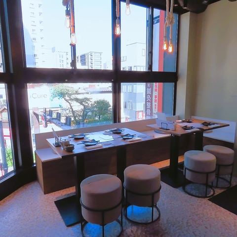 眺望の良い落ち着いた雰囲気の中楽しめるお店。大人が集う隠れ家的な空間で、少人数~大人数まで幅広く。