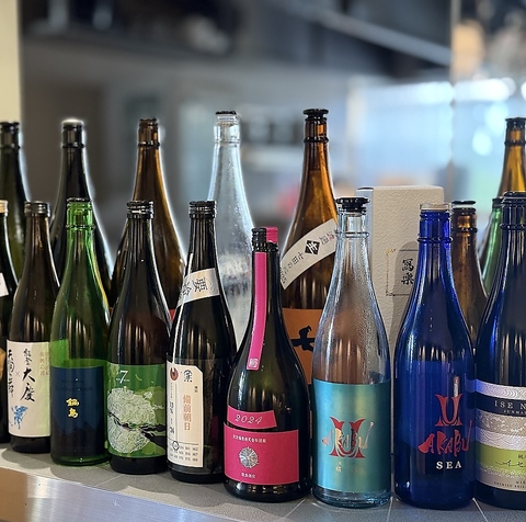 当店では、より気軽に、そして多彩なランナップの日本酒を取り揃えております。定番の銘柄だけでなく、流通量の少ない貴重なものや、高級な銘柄まで、幅広くご用意。さらに、飲み放題付きのコースでは、ビールやサワーといった定番酒だけでなく、自慢の日本酒約20種類までもが飲み放題。料理と一緒に、ぜひお楽しみください。