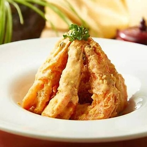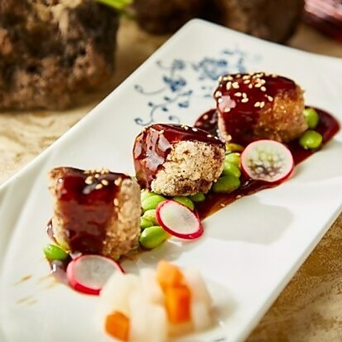 サクサクに揚げられた衣の中には、驚くほどジューシーでとろけるようななすが優しく包まれています。一口頬張れば、塩胡椒の絶妙な香りがふわりと広がり、食欲をそそります。この繊細な味わいには、ぜひ厳選された芳醇な紹興酒を合わせてみてください。お料理と中国酒の相乗効果で、普段の食事がぐっとリッチに◎